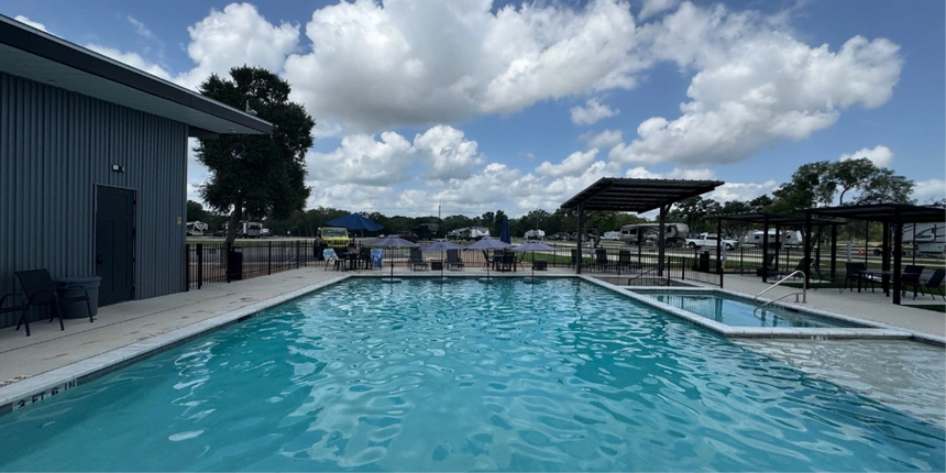 When the summer heat fades, fall arrives with crisp mornings, warm afternoons, and fewer crowds. At our Texas monthly campground, you can still enjoy our outdoor swimming pools, pickleball courts and community area! You can see our fall non-peak season hours